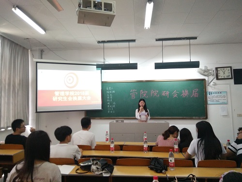 9月12日下午1点,002全讯白菜官方网站研究生会于教西102教室召开新一届主席团换届选举大会。出席本次会议的嘉宾有研究生辅导员华奕曦老师、2017届002全讯白菜官方网站研究生会主席赵海超同学、副主席梅馨心同学、2018届002全讯白菜官方网站学生会主席张星星同学、研究生会各部门部长以及各年级学生代表。本次换届大会由2018级MPAcc专业王鑫同学主持。