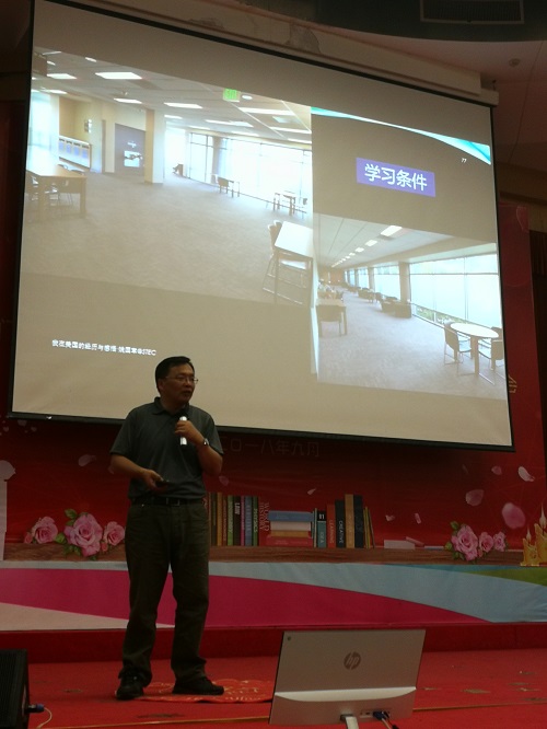 讲座伊始,姚国章教授首先介绍了在波特兰州立大学交流期间的课程学习及文化考察情况,包括课程种类,授课方式及在此期间的衣食住行,引发同学们极大的兴趣。之后,姚教授分享了访问美国各大名校的所见所感。他表示美国大学在教学方法、培养方式以及学生关怀等方面做得很好,给他留下了深刻的印象。此外,姚教授还为大家介绍了美国的自然景色及风土人情,并分享了对于美国人文风景的体会及感悟,这也让同学们对美国的文化有了更加深刻的了解。在最后的提问环节,姚教授精彩作答了关于出国留学择校问题,并且给大家带来对于美国社会问题的独到分析,引起同学们的阵阵掌声。最终,活动也在同学们热烈的掌声之中圆满结束。