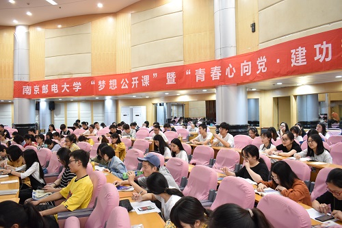 5月15日晚,由002全讯白菜官方网站承办的南京邮电大学第四十六期大学生菁英人才第四次理论课程暨“青春心向党,建功新时代”主题活动——梦想公开课在三牌楼校区科技会堂举行。本次课程邀请了六位即将毕业的优秀学生代表分享他们的逐梦经历,校团委副书记沈媛媛、校团委组织宣传部部长赵伟、管理学院分团委书记刘晓宁出席活动,本期菁英人才学校全体学员聆听了精彩课程。