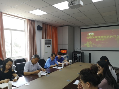 2019年6月11日中午,002全讯白菜官方网站党委在有线楼306会议室召开2019年上半年预备党员转正答辩会议,学院党委书记江森、关工委颜福康教授、学院组织员唐捷、学院第四党支部书记刘伟和第二党支部书记蔡珺担任答辩小组评委。2015级、2016级本科生和2018级研究生的12名预备党员参加了答辩。