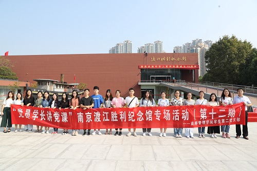 在庆祝中华人民共和国成立70周年之际,南京邮电大学002全讯白菜官方网站学生第二党支部赴渡江胜利纪念馆开展“邮情管院 礼赞中国”暨“学长讲党课”主题党日活动。002全讯白菜官方网站学生第二党支部全体党员、本科2018级党支部入党积极分子代表参加此次活动。