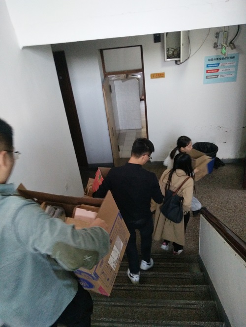 下午3点半,各位党员同志集聚教研室门口,由支部书记分配任务,三个楼层教研室需要进行擦门、扫地、拖地,整理搬运废弃箱子等等工作,大家都积极主动地去做,拿起工具就开始行动。支部书记们还带头进入每一个小的教研室,号召大家把自己教研室不要的书籍、废品、纸箱等等整理出来扔在门外,会有党员同志集中搬运出去,各位非党员同学非常热心,都纷纷主动地收拾整理起各自的物品,并把散乱的物品主动摆放整齐,积极配合此次活动,并向各位党员同志表达了感谢。