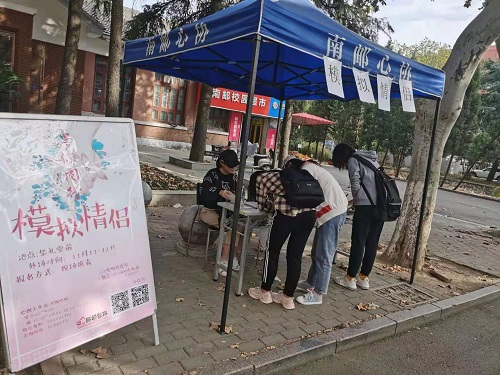 在活动的宣传和报名期间,分心协利用树洞墙、官方微信等校公共平台展开广泛宣传,协会各部部员坚守在秋风吹拂中的外场,用传单、群聊、推送等多样的方式让更多的同学了解活动内容与形式。分心协的大力宣传激发了同学们的参与热情,在活动外场,不少同学踊跃报名,期待遇见自己的那个“TA”。