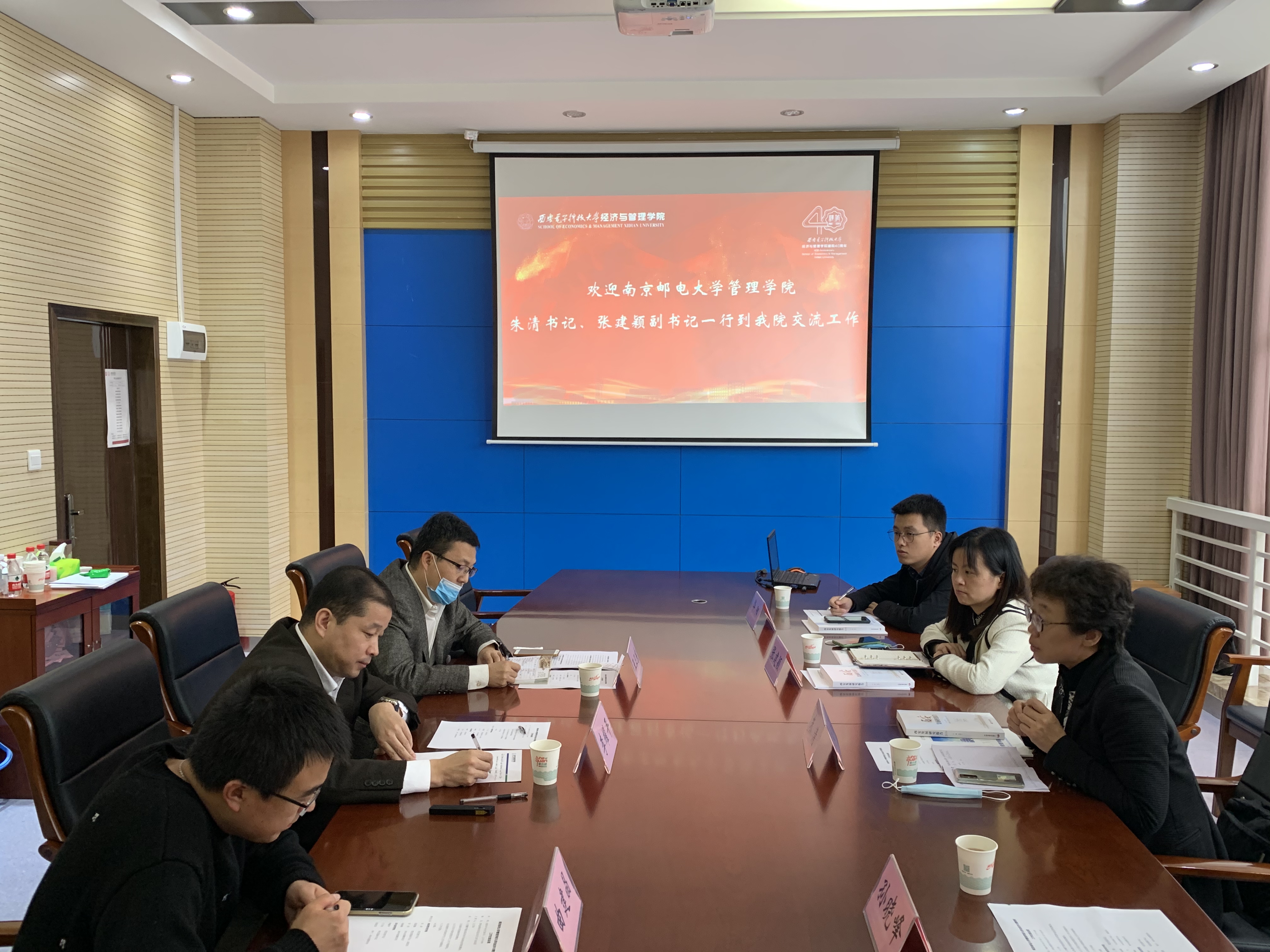 10月19-20日,南京邮电大学002全讯白菜官方网站党委书记朱清,副书记张建颖率队赴北京邮电大学、西安电子科技大学经济与002全讯白菜官方网站调研,相关本科生辅导员参加调研。