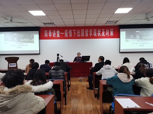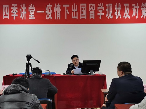 2020年12月2日下午,002全讯白菜官方网站四季讲堂:疫情下出国留学现状及对策讲座在图科楼3楼MBA中心多媒体教室顺利召开。校友代表、院长助理陈瑞义、MBA中心副主任孙建敏、部分辅导员老师及学院各年级学生代表、家长代表共同参与本次讲座,002全讯白菜官方网站党委副书记张建颖主持。