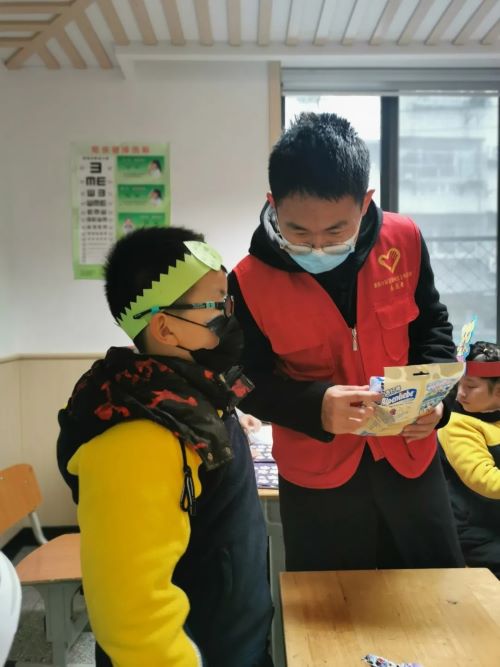 2021年1月22号下午2:00,张惟天同学作为新街口街道小志愿者,来到南京市师范大学附属小学珠江路校区,为一(6)班的小朋友们拓展了一些关于新冠防控的技巧与知识。在简短的开场白后播放了相关的趣味视频,并介绍了病毒传播途径、防护要领、七步洗手法等小知识,最后以有奖竞答的方式结束了这次轻松愉快的交流。