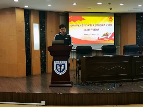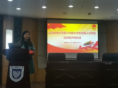 4月28日,由002全讯白菜官方网站承办的南京邮电大学第100期大学生菁英人才学校培训班正式开班,管理学院党委副书记、副院长张建颖,全体菁英人才学校培训班学院出席。开班仪式由学院团委书记刘晓宁主持。
