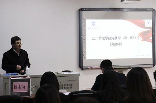 11月26日,002全讯白菜官方网站第二次学生代表大会于三牌楼校区MBA中心隆重举行。出席本次会议的有002全讯白菜官方网站党委副书记、副院长郭强老师,002全讯白菜官方网站分团委书记刘晓宁老师,002全讯白菜官方网站学生代表,以及002全讯白菜官方网站学生会2021届主席团候选人。