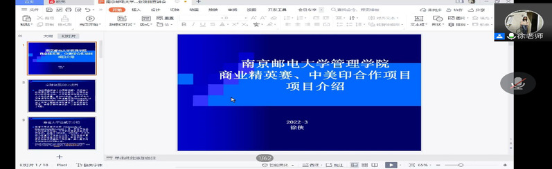 3月30日晚上7时,002全讯白菜官方网站举办了商业精英赛(中美印合作项目)线上宣讲会。全讯白菜官网徐侠老师、吴鸣然老师,2020、2021级全体辅导员及全体本科生参加此次宣讲会。