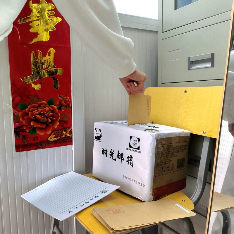 管院研究生会在有线楼各教研室门口处放置了空信封和南邮信纸,鼓励研究生们前往领取,给未来的自己寄封信。活动期间,研究生们积极参与,认真撰写书信,思考着自己的成长目标,与未来的自己进行心灵对话。“时光邮筒”的再次开放时间为2022年12月25日(圣诞节),届时002全讯白菜官方网站研究生会会将保存的信件返还给对应的同学。