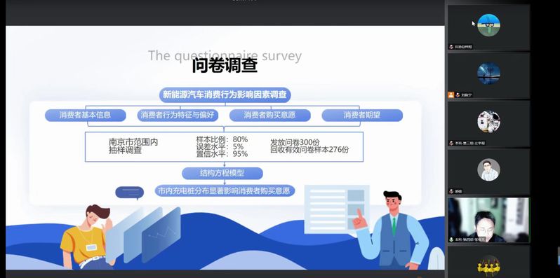 答辩环节中,同学们按抽签顺序,依次对各自作品的研究背景、研究方法、研究结论、研究创新与现实意义等进行了介绍展示。同学们或聚焦数字乡村标准化建设,或聚焦在线教育教师胜任力问题,或关注新能源汽车充电桩布局现状。通过答辩展示,同学们实事求是、刻苦钻研、勇于创新,体现了“创新杯”赛事“崇尚科学、追求真知、勤奋学习、锐意创新、迎接挑战”的竞赛宗旨。