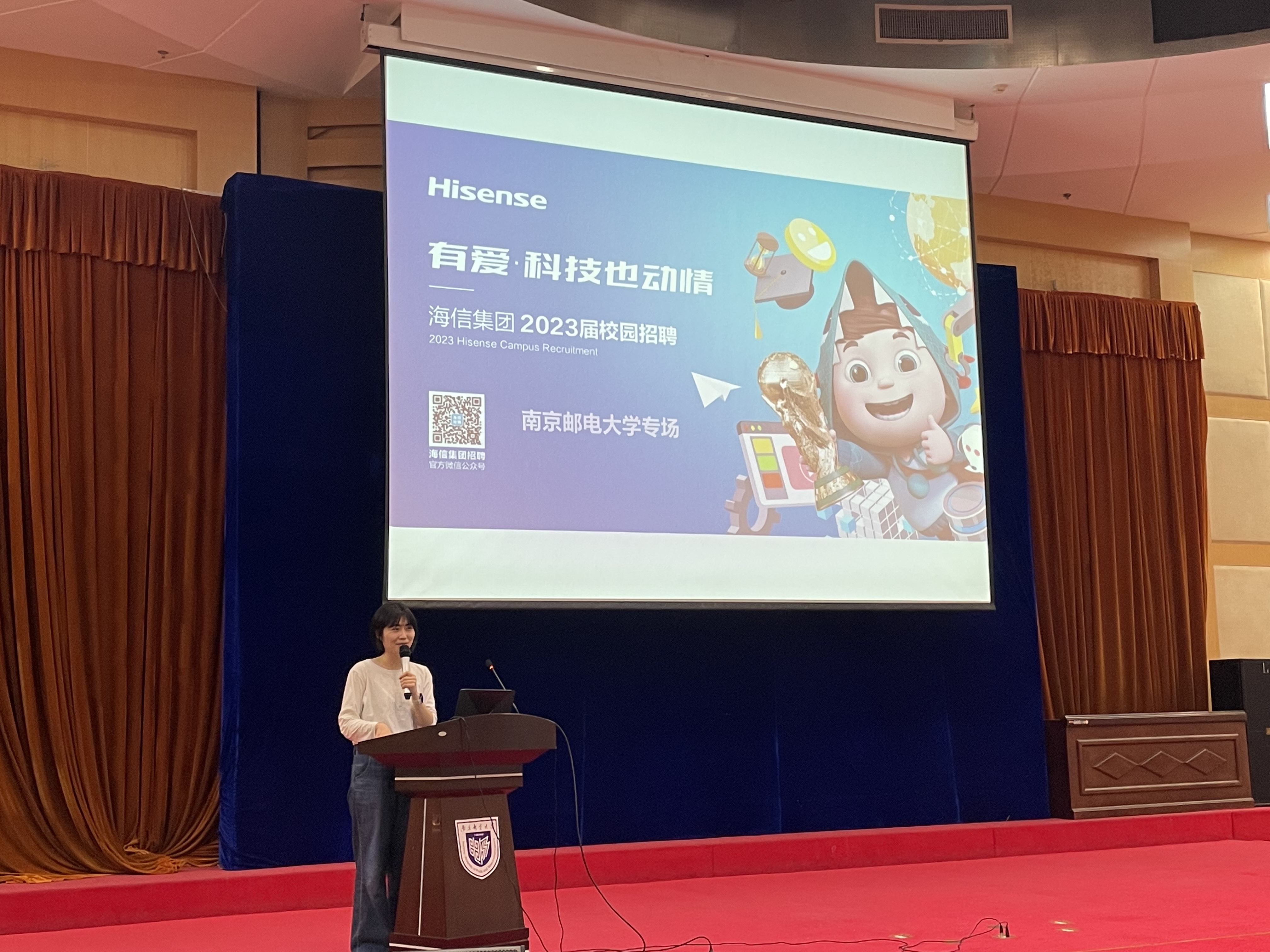 由南京邮电大学招就处主办、南京邮电大学002全讯白菜官方网站承办的海信集团招聘宣讲会于2023年3月10日下午14:30在我校三牌楼校区科技会堂二楼举行。本次招聘宣讲会旨在展示海信集团的品牌形象,介绍企业文化、招聘岗位、职工待遇等方面的信息,为南邮学子提供好的个人发展平台。