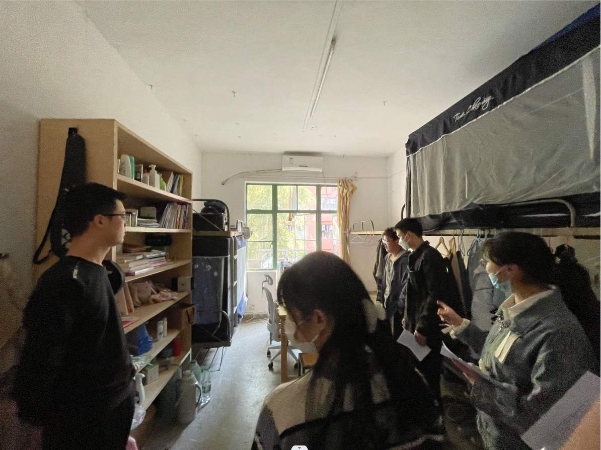 3月6日至10日,由学院党委副书记、副院长郭强带队,全体辅导员及学生代表前往各宿舍区开展安全卫生检查工作。在检查过程中除了对照标准对宿舍的卫生情况进行检查外,郭书记和各辅导员还关心了解学生在宿舍内的学习、生活情况,提醒学生要充分珍惜在校园内的学习时间,不虚度春季大好时光。在检查评比过程中还对学生进行安全、健康教育,提醒学生春季气温变化较大,要及时增减衣物,要注意宿舍开窗通风,保持室内空气流通,减少呼吸道疾病传播风险;此外还要求各宿舍严守安全底线,坚决杜绝宿舍内私藏和使用违章电器的现象。
