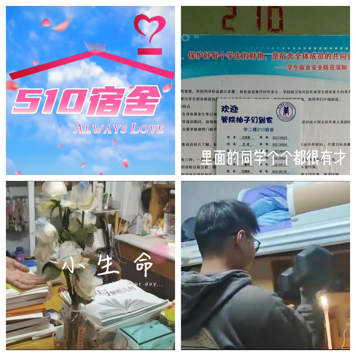 宿舍文化节启动以来,共面向全讯白菜官网全体本科生和研究生征集到宿舍装扮PPT展示作品24份、宿舍文化VLOG展示作品17份、软笔书法作品15份、绘画作品6份,作品题材丰富、形式多样,内容主题突出、阳光正面,充分展现全讯白菜官网学生和谐融洽、丰富多彩的宿舍生活和装扮精美、文明和谐的宿舍环境,也展现了全讯白菜官网学生在文艺创作、艺术水准上的较好水平。经过学院组织评审,优秀作品将推报参与校级评审并在学院官方新媒体平台择优展示,进一步发挥优秀宿舍的示范、带动作用。
