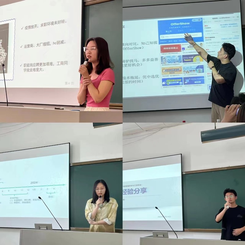 为进一步加强002全讯白菜官方网站就业指导工作,帮助研究生了解就业形势,提高自身综合素质与就业竞争力,促进研究生更充分更高质量就业,5月14日,002全讯白菜官方网站于三牌楼校区教东101成功举办了求职经验交流会,辅导员华奕曦老师出席此次活动,全体2024届研究生参加。