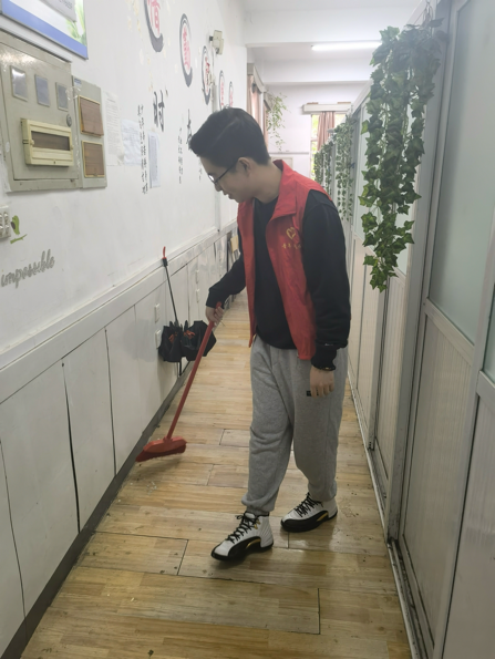同学们在活动过程中,针对教研室各个区域,将地面清扫拖净,不留任何死角,做到无纸屑、果壳、碎末、烟蒂、口香糖等废弃物;门窗、桌椅、文件柜、电脑、电器等设备设施擦拭干净,做到无灰尘,无污渍;及时将机内垃圾筒的纸清空;室内墙面保持干净整洁,四周墙壁及其附属物、装饰品无蜘蛛网、浮尘;室内物品摆放有序;垃圾篓里垃圾及时清倒;拖布、扫把等卫生用品使用完毕后需清洗干净,摆放整齐有序。