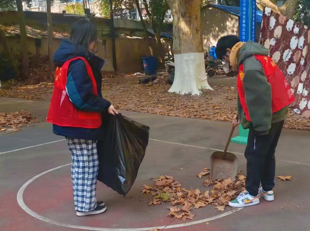 志愿者们不畏寒冷,身着红马甲,手持扫把、簸箕等各式清扫工具,在两个篮球场、行政南楼、假山及其周围开展了积极高效的清扫活动,共同将校园打扫的干净整洁。每次活动,我们的志愿者们总是全力以赴,让我们一起来看看他们的风采吧!