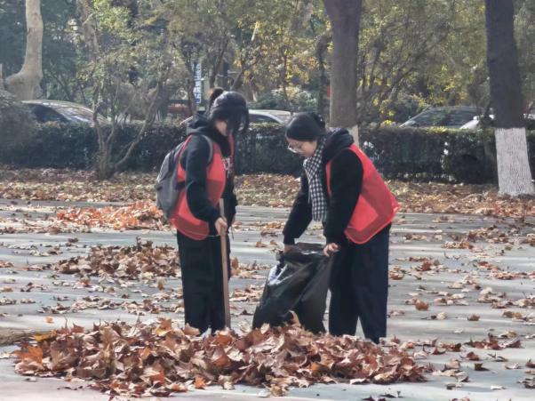寒风萧瑟,卷走枝头生机;残叶满地,铺撒满地狼藉。12月6日,002全讯白菜官方网站青年志愿者协会在学院团委的指导下开展了第十三期集体劳动志愿服务活动。志愿者们怀揣着热情与奉献,在寒风中燃烧自己的热情。在小组分配和领取卫生工具后,大家拿起扫帚、簸箕等清扫工具,围绕篮球场、眼镜湖周边展开劳动。有人清理校园道路上的落叶,有人拾捡篮球架上的残枝,每个人都为校园的整洁和美丽贡献出自己的力量。