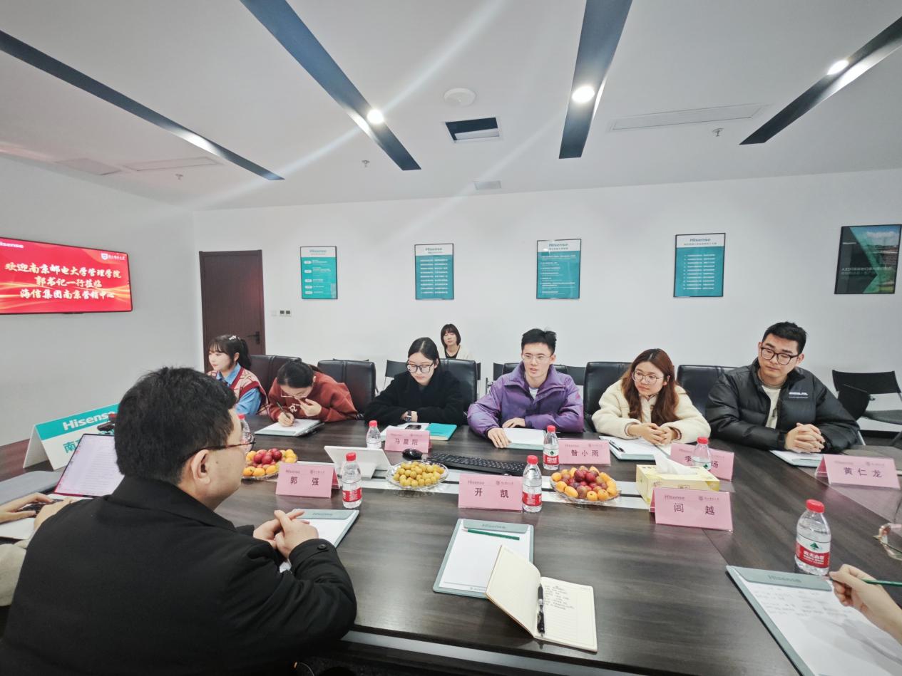 为深入贯彻落实国家有关稳就业的部署和要求,扎实做好学院2024届毕业生就业工作,进一步深化校企合作、挖掘就业岗位,3月5日上午,学院党委副书记、副院长郭强带队前往海信集团南京营销中心开展访企拓岗活动,学院分团委书记、2024届本科毕业班辅导员参加本次访企拓岗活动。海信集团南京营销中心总经理吕朝云,华东区人资行政负责人张学会等领导热情接待全讯白菜官网一行,双方进行深入座谈交流。