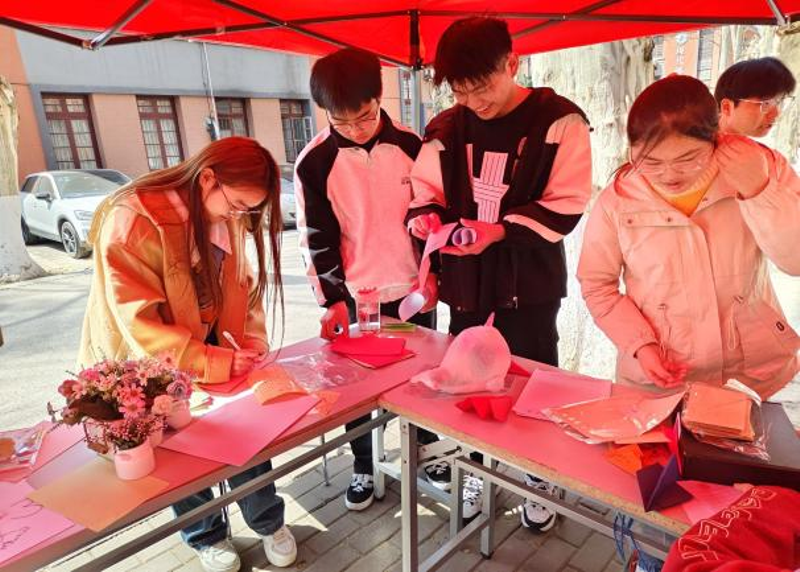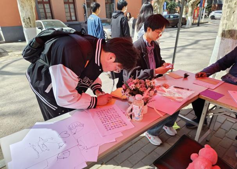 活动前期,利用多形式多手段的宣传,营造良好的校园心理文化氛围。线上线下相结合,提高同学们的参与兴趣与积极性。本次活动的主要内容包括三部分:第一,“投其所好,壶中有趣”——通过投壶来释放心中的压力以及负面情绪;第二,“悬空作画”——用细线系笔描绘出当下心情,同时还能提高专注力;第三,记录“放飞烦恼”的一瞬间——将自己的烦恼折成纸飞机,松手亦释然;第四,“时光邮局”——写一封给未来自己的信。活动在三牌楼校区开展,开始第一天,总计两百五十余人次参与,以素质拓展游戏为载体,在轻松愉悦的氛围下,既让同学们身心得到放松,也让同学们为了共同目标团结在一起,不仅使得同学们收获了友谊和喜悦,又能够更好的关注自我,关注心灵成长,提高心理素质。