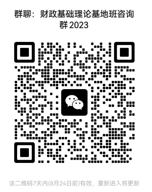 财政基础理论基地班招生(线上)宣讲和答疑会时间待定,敬请关注财税学院后续通知。如有任何疑问,欢迎加入咨询群微信沟通。