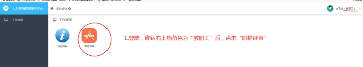 (1)个人登陆OA系统后,从校园门户-人事系统跳转,或用校园门户密码直接登陆zhicheng.cufe.edu.cn(注意:右上角角色须为“教职工”),然后点击“职称评审”;