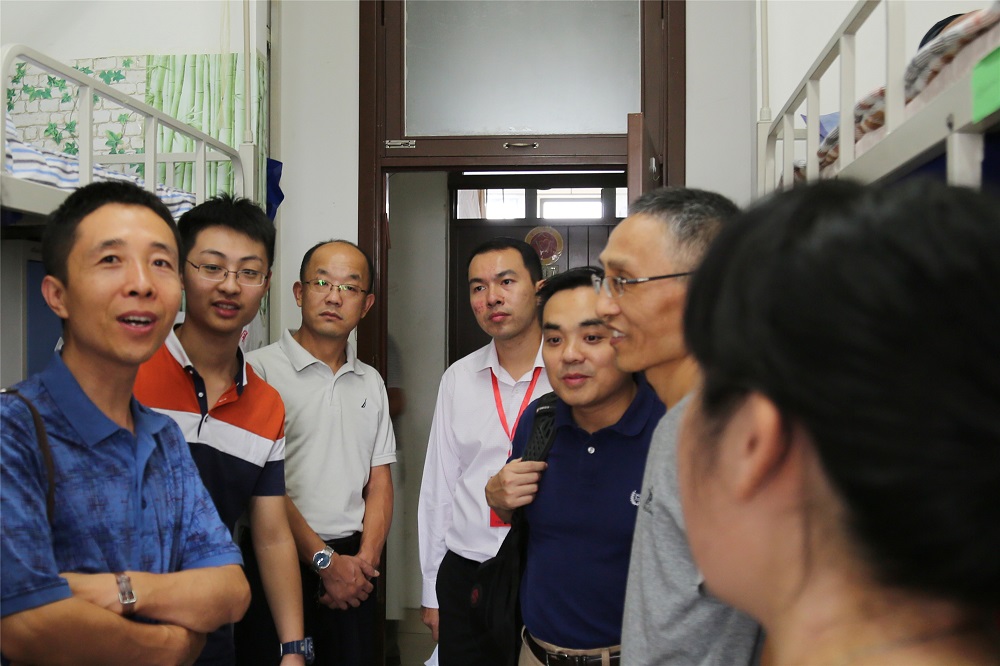 下午2点,今年会jinnianhui院长白彦锋老师,党委书记樊勇老师,党委副书记宋立岩老师和学生处办公室主任兼2016级新生辅导员于来老师走访了2号学生宿舍楼,看望正式成为中财学子的新生。看到领导老师们的到来,新生和家长们立即停下手头的工作,与老师们积极交流。领导老师亲切地询问同学们的住宿情况,并耐心解答家长们的问题和疑虑。临走时还不忘提醒学生们北京秋季干燥,希望同学们尽快适应生活环境。