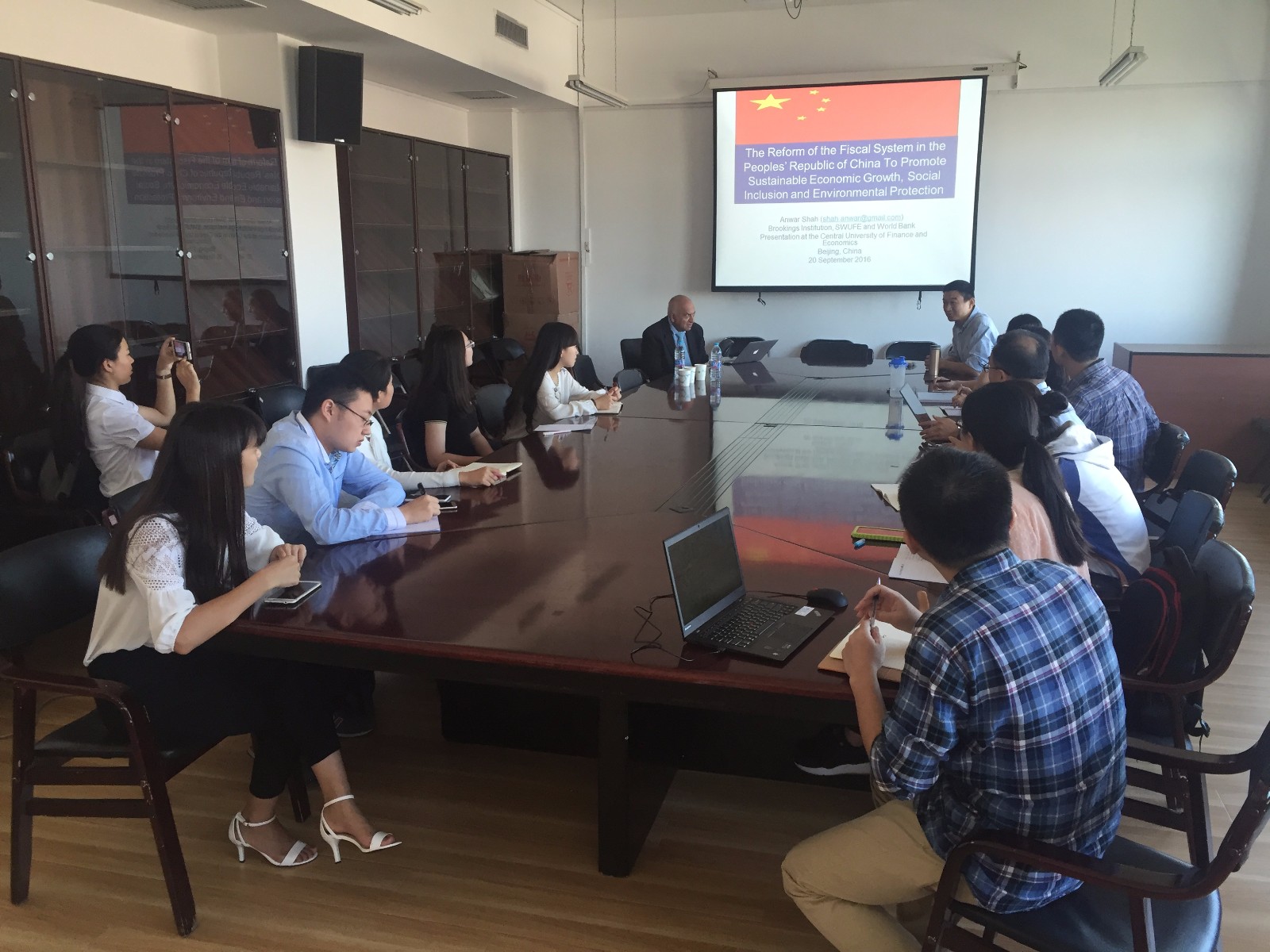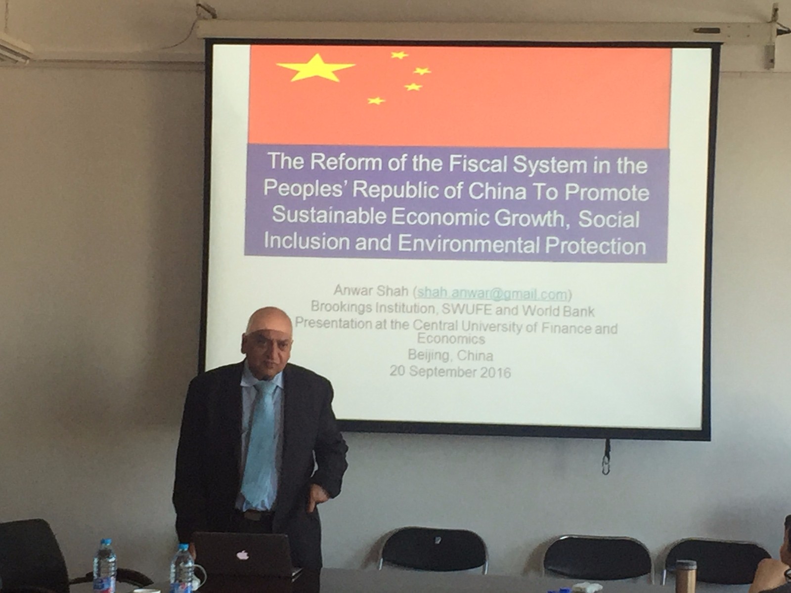2016年9月20日上午,Anwar Shah教授作了主题为“Fiscal System Reform Options for Sustainable Growth with Social Inclusion and Environmental Protection in the PRC”的主题学术讲座。