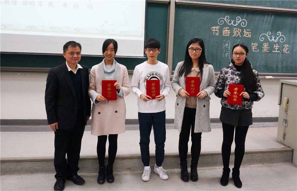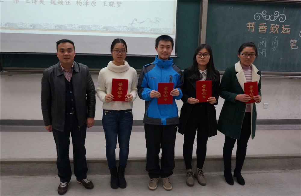 在读书月开幕式上,还进行了2015-2016年度今年会jinnianhui莘莘学子OSCAR颁奖,对过去这一年间成绩优异、团学工作能力突出、社会实践成果显著、志愿服务精神可嘉的同学进行了表彰。白彦锋老师、樊勇老师、李飞霞老师和张苏老师为获奖的学生代表颁发了证书。