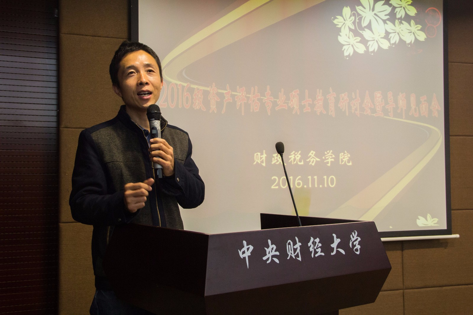 2016级资产评估专业硕士导师见面会在中财大厦二层报告厅举办,会议由何杨副院长主持。