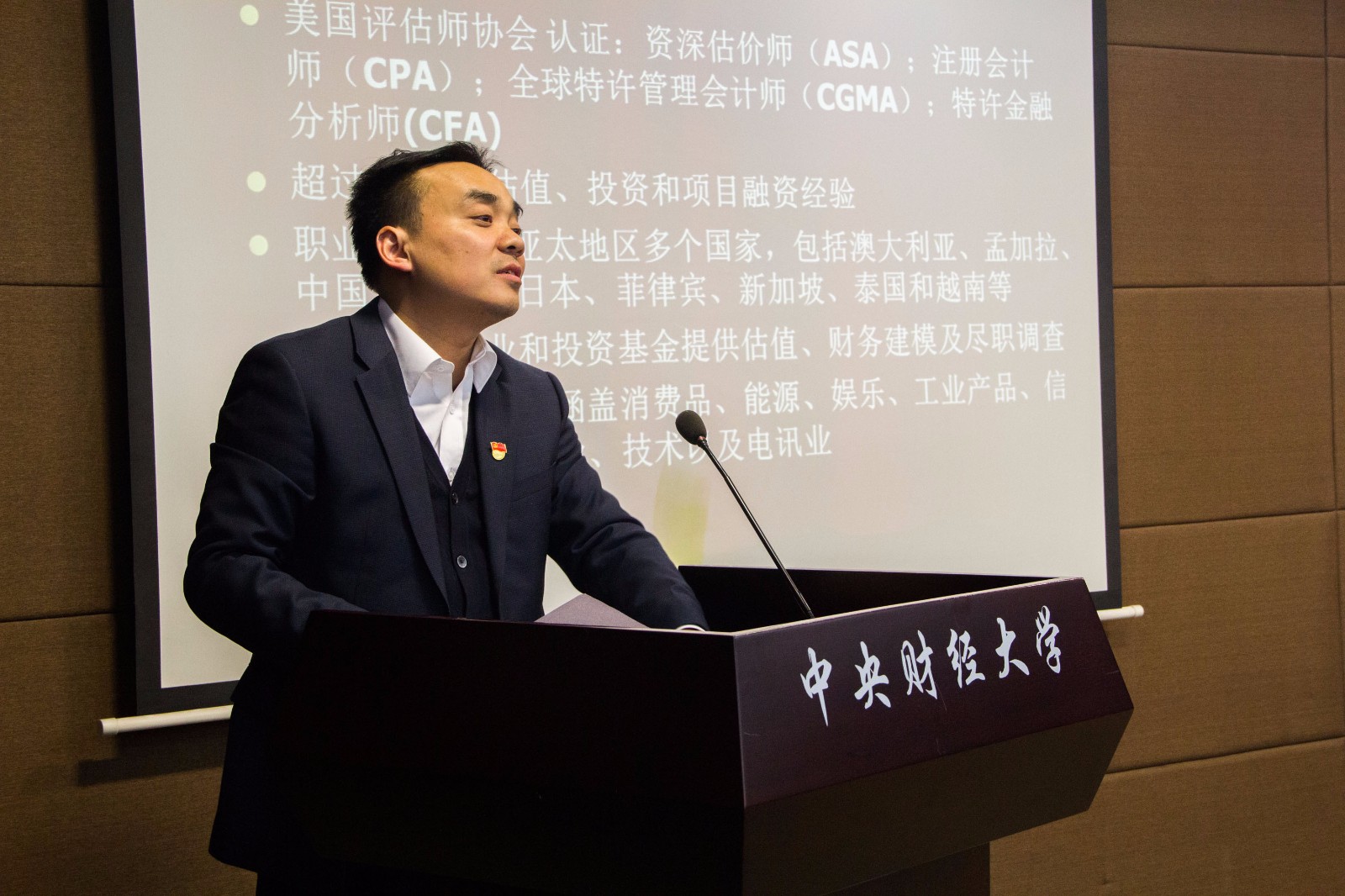 学生汇报环节首先由资产评估专硕二年级代表杨亚坤团队向大家展示了其团队在校案例大赛中获得一等奖的作品—— “乳制品行业公司估值研究”。该案例对伊利股份进行了宏观层面分析、行业层面分析、公司层面分析和同型报表分析、企业价值评估。通过对伊利股份的研究,增加对乳制品行业的当前发展现状、盈利模式下企业价值评估的方法的了解,丰富现有的评估行业门类。对企业盈利的各个环节进行多个角度的研究,有利于从不同视角得到企业价值背后的驱动因素和成长动力。资产评估专硕一年级新生代表刘晨阳同学向大家展示了自己的论文成果——《文化企业知识产权的评估方法》。他将自己的爱好与专业知识相结合,从动漫和游戏的角度分析文化产业的特点以及文化产业特点对知识产权评估方法的影响,并基于上市公司公开资产评估报告及评估说明,对我国上市公司知识产权评估方法应用情况进行统计分析,选取了三个我国文化企业知识产权近期的典型评估案例进行评价分析,评价不同评估方法在实际应用中的适用性和缺陷以及对文化企业的借鉴意义,整个汇报过程获得了老师和同学们的一致认可。最后,2016级新生代表彭予秋同学发表了讲话,她代表2016级资产评估专硕全体新生感谢校内外导师的到来,并表示在未来的两年中一定要努力学习专业知识,为资产评估事业的发展贡献自己的力量。