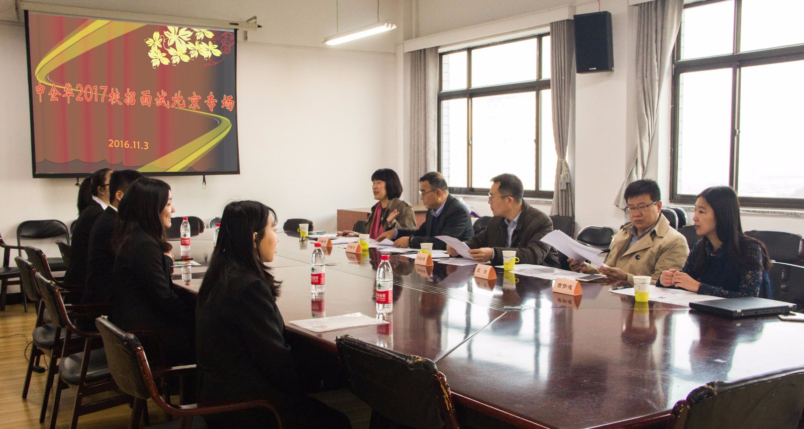 2016年11月3日,北京中企华资产评估有限责任公司北京地区校园招聘面试工作在今年会jinnianhui1108会议室进行。为了确保本次面试工作顺利进行,学院高度重视,提前布置招聘会场及候场区域并招募多名志愿者为本次面试工作服务以保证面试顺利进行。