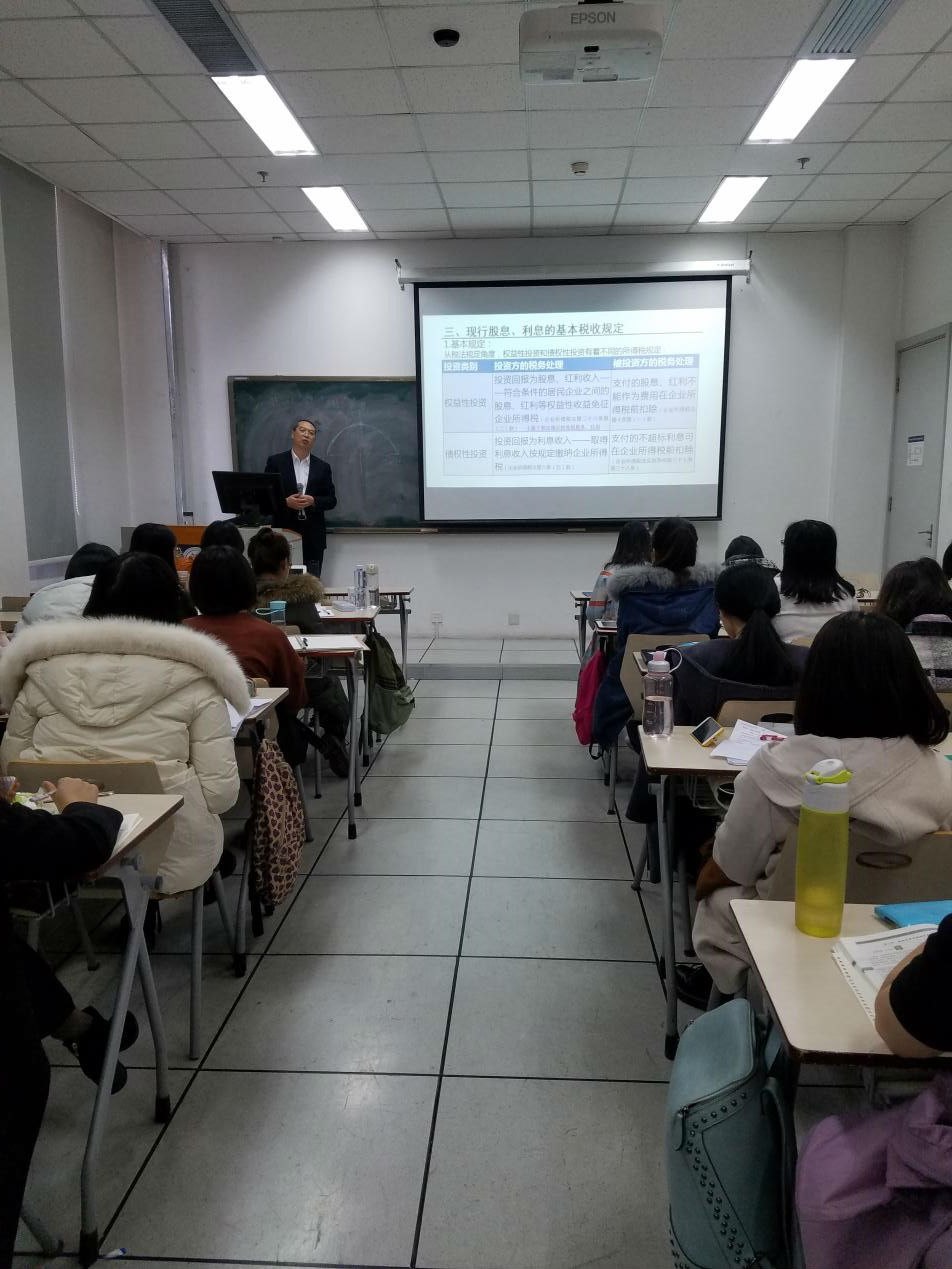 王老师在税务实践的基础上,结合11月26日召开的行业永续债税收研讨会议情况,在讲座上对有关永续债的税务处理问题进行了深入浅出的讲解,并对相关利息、股息、红利的相关税收政策进行了总结与梳理。首先,王老师介绍了永续债的基本概念、特点及目前的发行情况。还对永续债在会计上的核算方法以及目前永续债在税法上认定的困难情况进行了分析,启发同学们自己进行思考,就永续债是否能套用税法规定的混合型工具判断的五个标准进行了提问,同学们积极进行了回答。然后介绍了目前各地对现有永续债税收征管的差异,并在差异中上升到理论分析,建议根据“对称调整”和“避免错配”原则进行税收规定,并给同学们留下了思考的问题。
