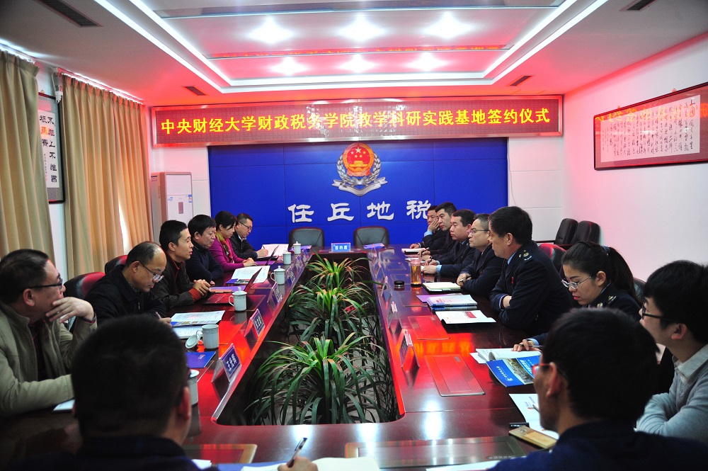 双方通过愉快的会谈,签署了合作意向书,以实现用更加宏观的视角看税收、更加专业的视角看税收和更加长远的眼光来看税收。学院将利用自身的智力资源,未来和任丘地税局在提升培训、课题研究、干部挂职锻炼、学生实习、党建活动等方面开展进一步的深入合作,力图在大数据治税和“互联网+”税收征管革命方面实现突破。