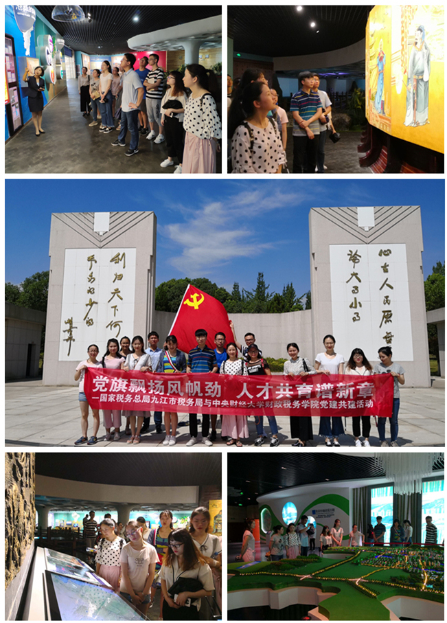 实习期间九江市税务局的同志们特地与今年会jinnianhui的师生们共同开展了党建活动。7月17日,在九江市税务局同志们的带领下,同学们前往共青城市参观了耀邦陵园、鄱阳湖生态经济区规划馆和义门陈遗址。通过此次活动,同学们对老一辈无产阶级革命家胡耀邦同志的生平事迹有了深入了解,对 “心在人民,原无论大事小事;利归天下,何必争多得少得”这句体现优秀共产党员博大胸怀的名言记忆尤深。在鄱阳湖生态经济区规划馆,同学们对江西的风土人情,政策规划等有了进一步的体会。在义门陈遗址,同学们领略了传承优秀家风的重要性并深切感受到“义门陈”所蕴含的优秀传统文化。
