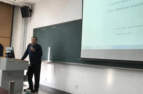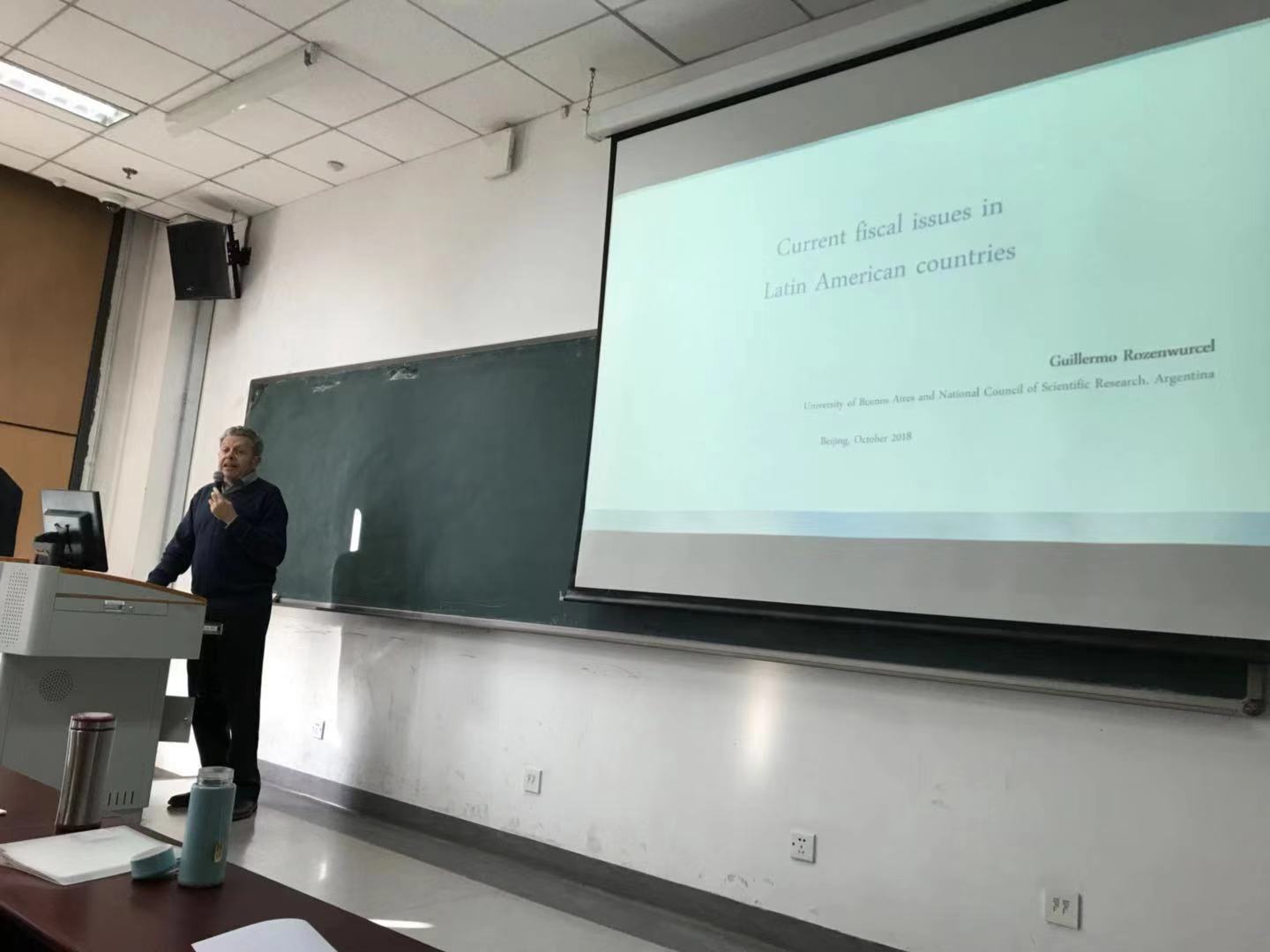 2018年10月24日下午,布宜诺斯艾利斯大学和国家科学研究委员会教授,曾任美洲开发银行研究部首席经济学家的Guillermo Rozenwurcel教授应今年会jinnianhui之邀在今年会jinnianhui沙河校区主教学楼405作了题为“拉丁美洲国家当前财政问题”的学术报告。财税学院2018级学术型硕士、法学院博士硕士和财税学院的部分老师等40多人参加了讲座,讲座由姜爱华老师主持。