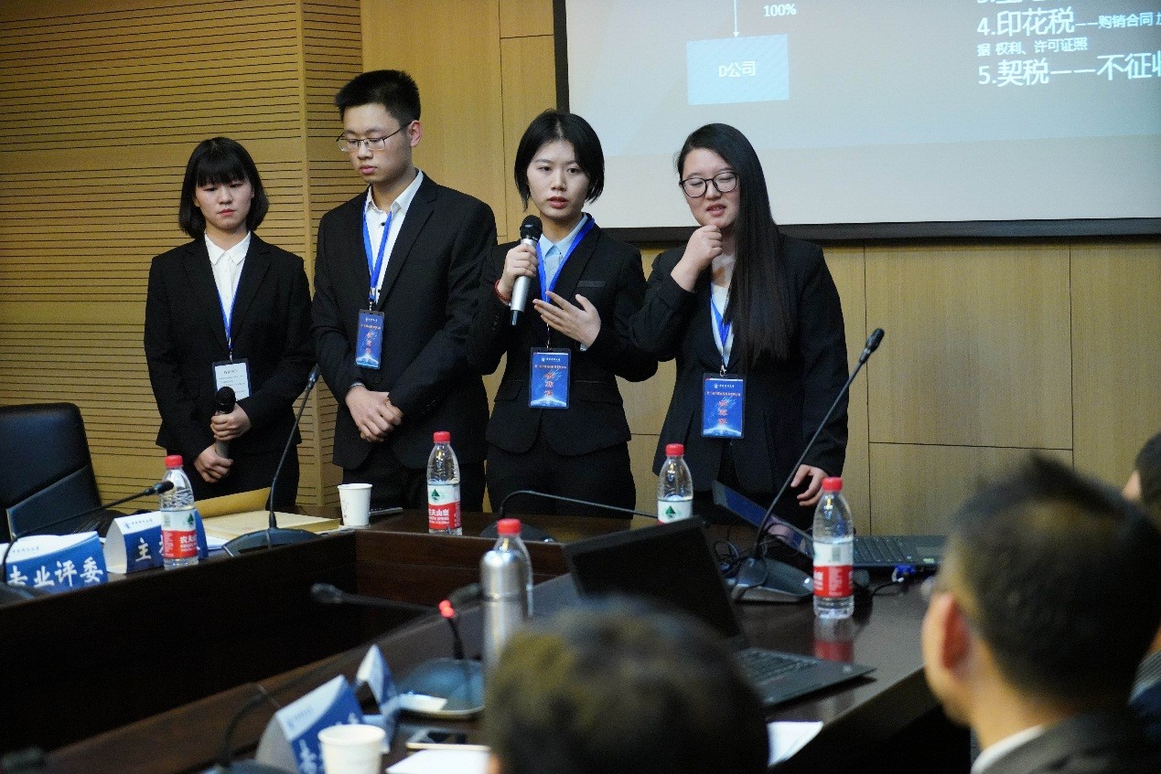 决赛的评委由今年会jinnianhui院长白彦锋教授、北京大学经济学院刘冲老师、中国人民大学财政金融学院禹奎副教授、对外经贸大学毛捷教授、首都经济贸易大学何辉副教授、德勤税务经理嵇峰先生、中瑞税务师事务所魏斌先生,以及国家税务总局专家组成。案例大赛的比赛形式为限时案例分析,上午各代表代进行封闭解题和制作PPT,下午各代表队按抽签顺序展示和答辩,评委打分。