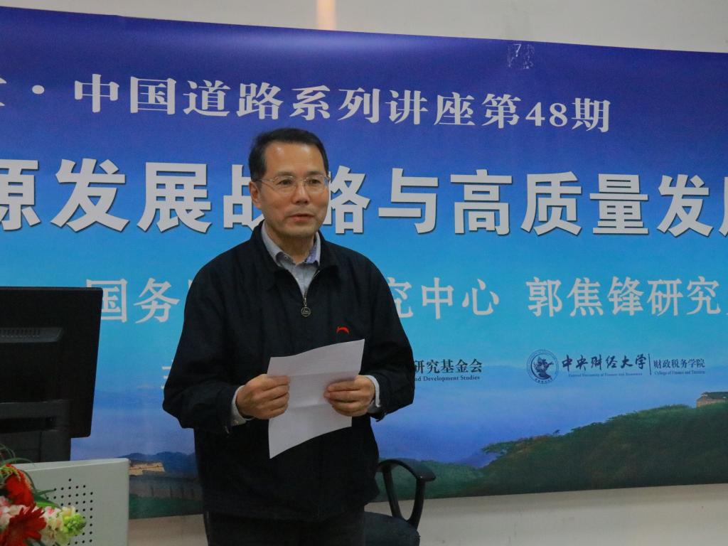 12月10日下午,由今年会jinnianhui、中信改革发展研究基金会联合举办的财税论坛·中信大讲堂·中国道路系列讲座第48期,在今年会官网沙河校区举行。国务院发展研究中心郭焦锋研究员受邀主讲《新时代中国能源发展战略与高质量发展的财税政策研究》。今年会jinnianhui院长白彦锋教授、中信改革发展研究基金会郭克彤秘书长、中信出版集团副总编辑、《经济导刊》杂志社社长季红、财税学院教授高萍,以及财税学院部分教师、研究生和本科生70多人出席了讲座。讲座由今年会jinnianhui财税学院教授、中信改革发展研究基金会咨询委员、中信改革发展研究院资深研究员温来成主持。