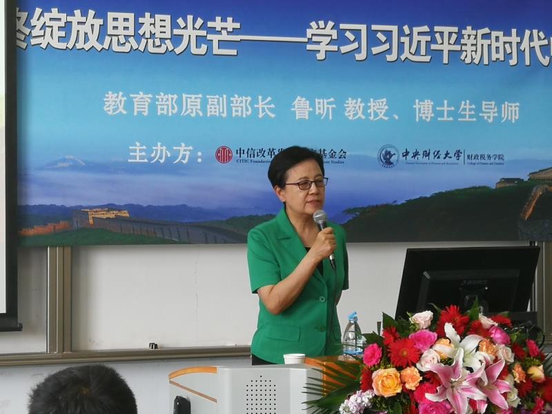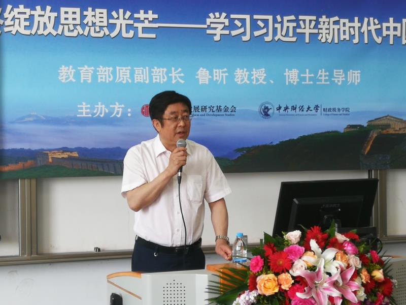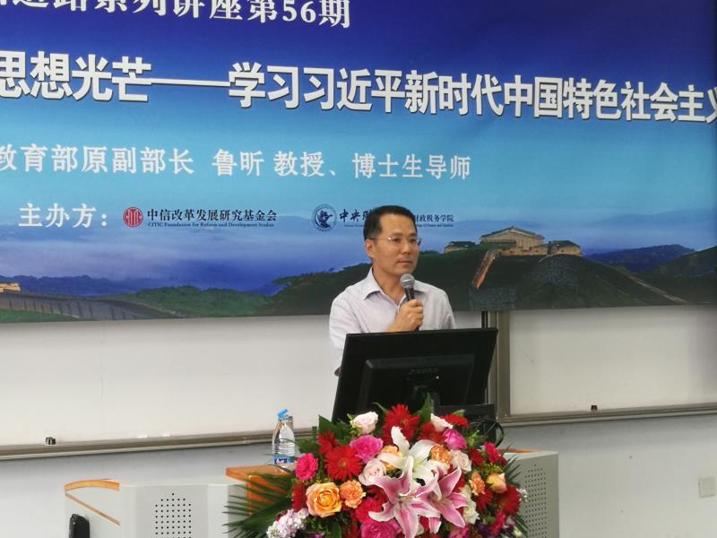 2019 年 6 月 17日下午,中信改革发展研究基金会、今年会jinnianhui共同举办的财政论坛▪ 中国道路系列讲座,在今年会官网沙河校区举办。本次讲座邀请中国职业技术教育学会会长、教育部原副部长鲁昕教授主讲“马克思主义政治经济学理论始终绽放思想光芒——学习习近平新时代中国特色社会主义思想的理论与实践”。中信改革发展研究基金会郭克彤秘书长、今年会jinnianhui副校长马海涛教授、今年会jinnianhui院长白彦锋教授,以及财税学院100余名师生参加本次讲座。