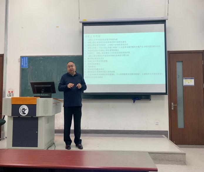 讲座一开始,朱老师就抛出“企业税收管理的目的”这一问题来引发同学们的思考,并讲述了自己的理解。朱老师认为企业税收管理是为了准确纳税,既不少交税款,也防止多交税款,而不仅局限与通过筹划将自身税负降到最低。接着,朱老师开始讲座的主体部分。首先是讲述企业如何开展税务管理。朱老师从税务管理的定义,税务管理的目标,企业税务管理的制度建设等方面,企业税务管理的年度总结报告等方面展开介绍与解释。结合实际情况,朱老师教导同学们在日常的学习中不仅要了解各个税种缴纳情况的准确计算,更要关注涉及税种的类型,税收缴纳的地点,缴纳的时间等,同时也强调了解企业经营活动,公司组建,合同签订,行政诉讼等方面法律法规的重要性。其次,朱老师从税企争议的概念,法律体系的梳理,具体文件评价举例等方面讲述了如何解决税企争议的问题。在这部分中,朱老师通过举“股权转让过程中扣缴义务人扣缴个人所得税时遇到的问题”“个人以科学技术出资设立公司时个人所得税缴纳问题”两个例子,来说明涉税红头文件合法性审查的问题,强调若是涉税红头文件损害了纳税人的权益,扩大了纳税人的义务即是不合法的。朱老师的讲述引发同学们的思考,开阔了同学们的思维。最后,朱老师介绍了税收筹划的相关知识,包括税收筹划的定义和分类,税收筹划与咨询之间的关系,税务机关对税收筹划的认知变化等。朱老师认为税收筹划应当在企业整体业务未发生前,管理层尚未作出最终决策前进行考虑,并且强调税收筹划的成本。