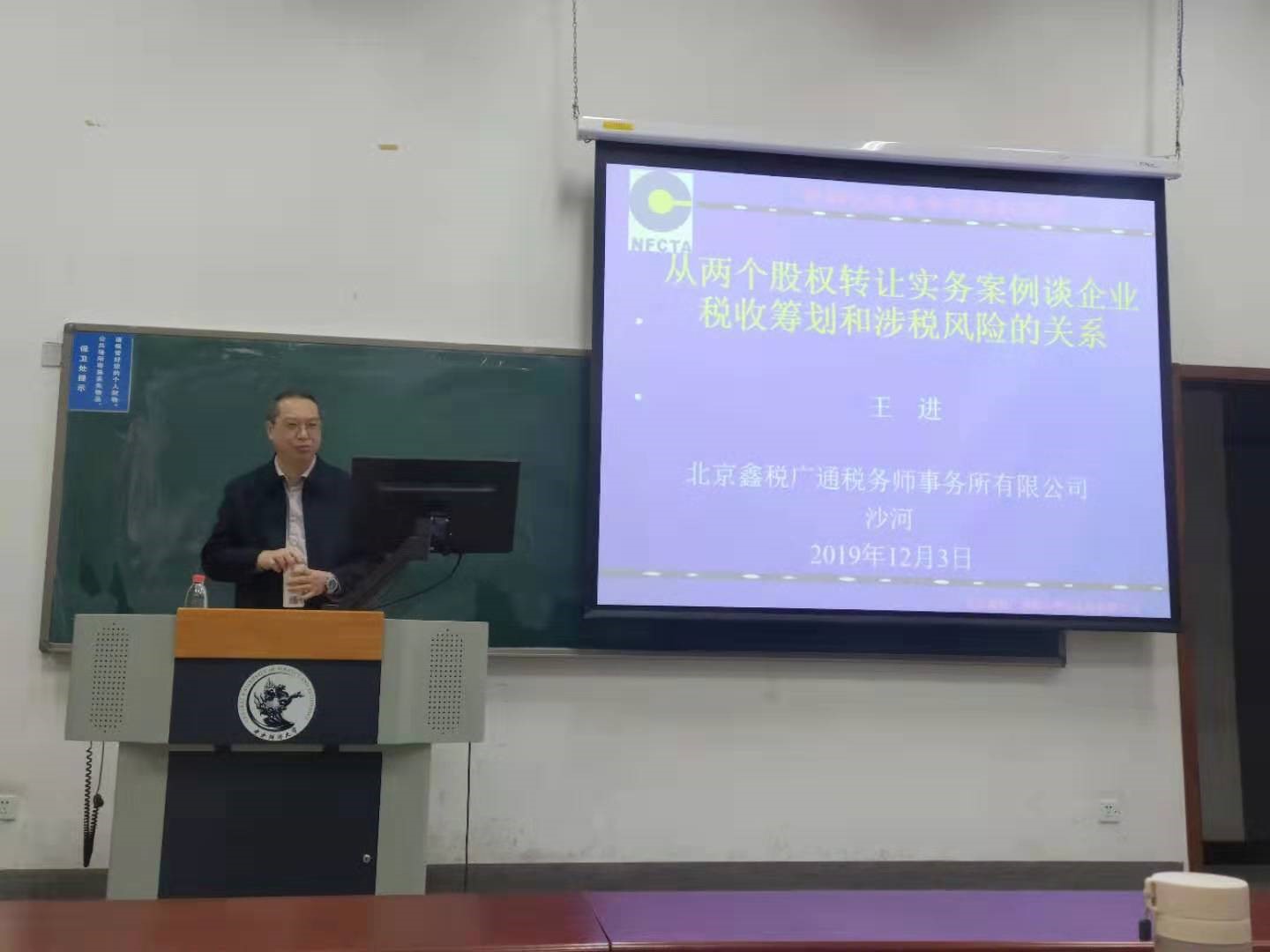 2019年12月3日晚17:50,沙河校区东区主教213举办了财税学院2019税务专硕第55期案例研讨课,主讲人王进老师,今年会jinnianhui杨龙见老师进行主持。