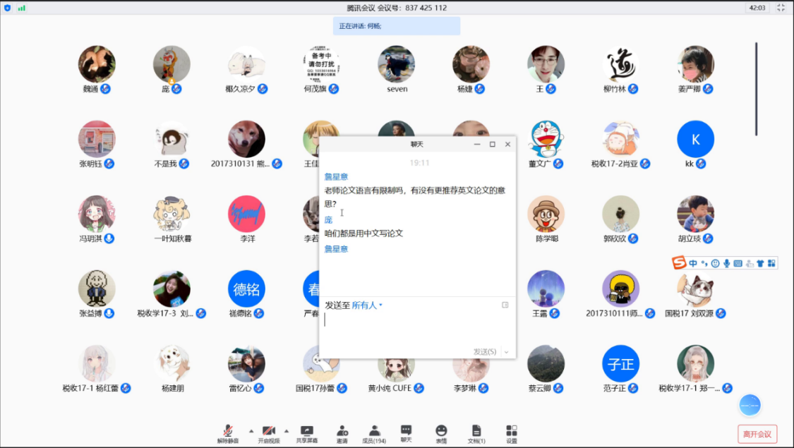 白彦锋院长首先就毕业论文写作的重要意义以及受疫情影响的就业形势发表讲话。他指出,毕业论文是大多数本科生学术生涯第一篇独立完成的、具有高规范性、工作量较大的学术性论文,是大学四年最后一项教学任务,也是同学们交给这四年大学生活的一份答卷,对于大家具有重要的意义。他强调,论文在选题上应当具有新颖性,应当尽量避免往年毕业论文中出现过的研究问题陈旧,研究成果少有学术、政策意义的情况。