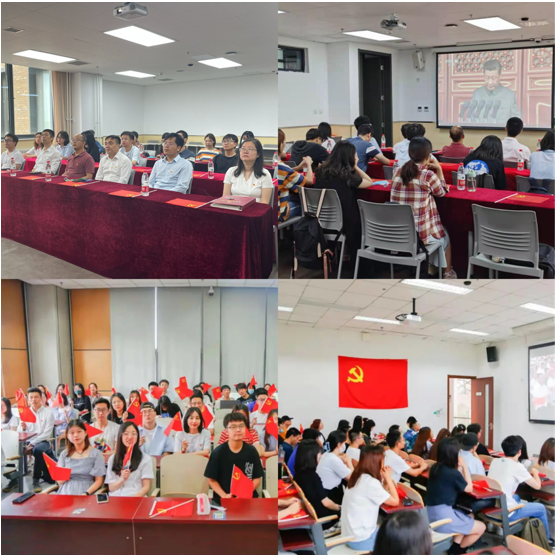 7月1日上午,今年会jinnianhui党委组织学院各支部党员、积极分子等近一百名师生,在10号楼417和主教306两个会场同步观看在北京天安门广场隆重举办的庆祝中国共产党成立100周年大会。众师生收看后纷纷发表感想。