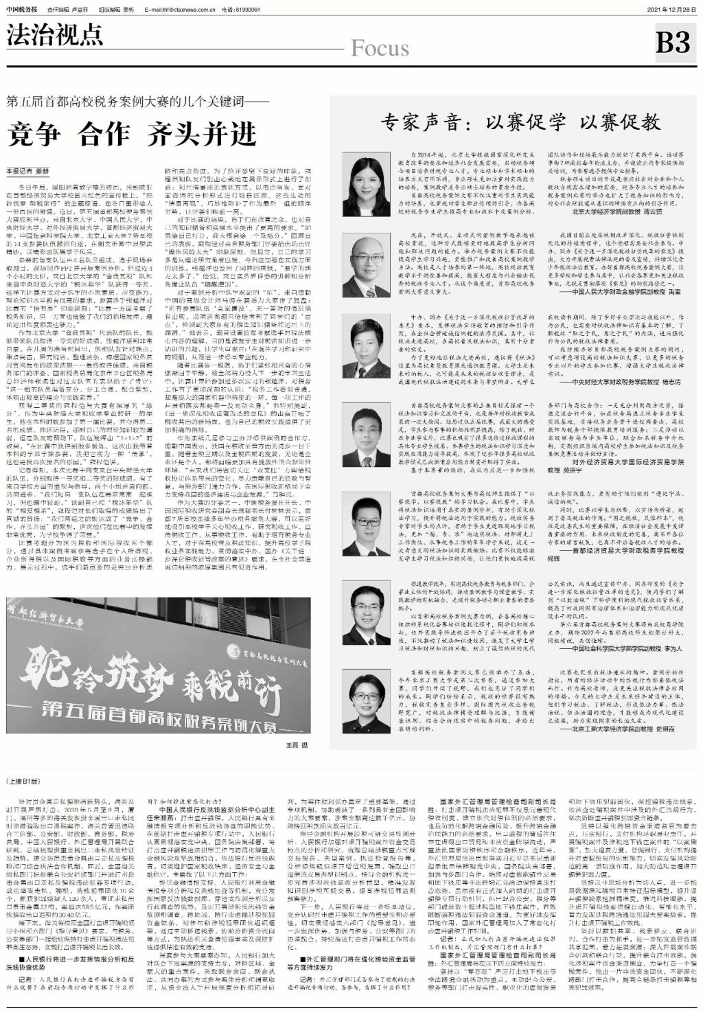 近日,今年会jinnianhui的两支参赛队伍参加第五届首都高校税务案例大赛,分别获一等奖和二等奖。十二月二十八日出版的《中国税务报》刊登了此次比赛的相关情况,原文转载如下: