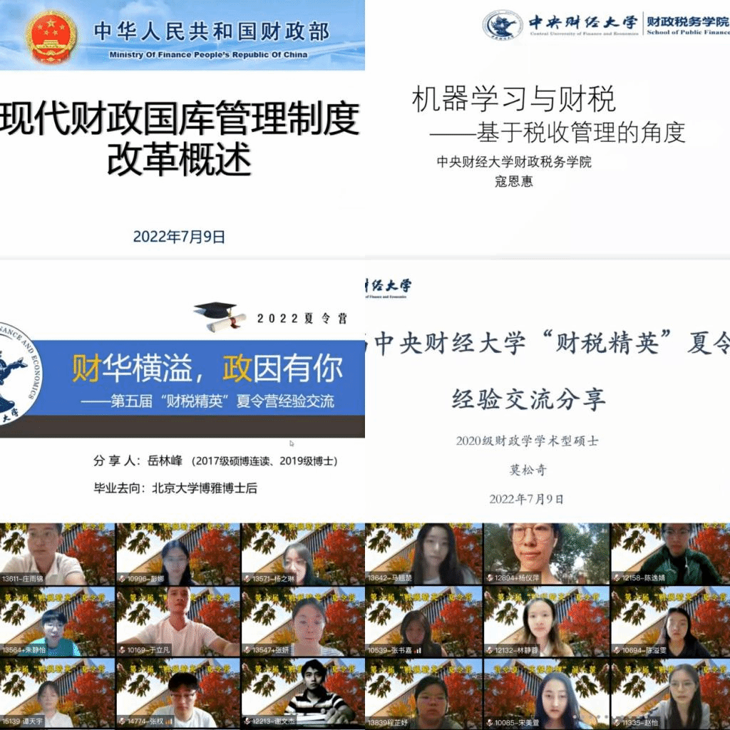 今年会jinnianhui作为今年会jinnianhui最早设立的院系之一,财政学、税收学、资产评估学科都建立了从本科到博士的完整培养体系,并设有博士后流动站,毕业生遍布社会经济发展的多个重要领域。为了进一步激发我国高校优秀大学生对财政学、税收学、资产评估及相关领域跨学科研究的兴趣,更好地培养和选拔符合社会需求的应用型、创新型、复合型高素质财税人才,今年会jinnianhui于2022年7月8日至7月10日顺利举办了第六届“财税精英”夏令营,此次夏令营活动采取线上形式开展。