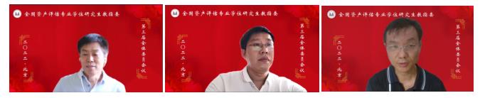 第三届教指委委员王佳教授、张利国教授、姚玲珍教授、张铭洪教授、王竞达教授、王景升教授、文豪教授、俞明轩教授依次发表讲话。他们对资产评估教指委的支持、信任表达感谢,表示会大力支持教指委的工作,履行好相关职责,并就教指委工作、资产评估专业硕士教育发展提出了建议。