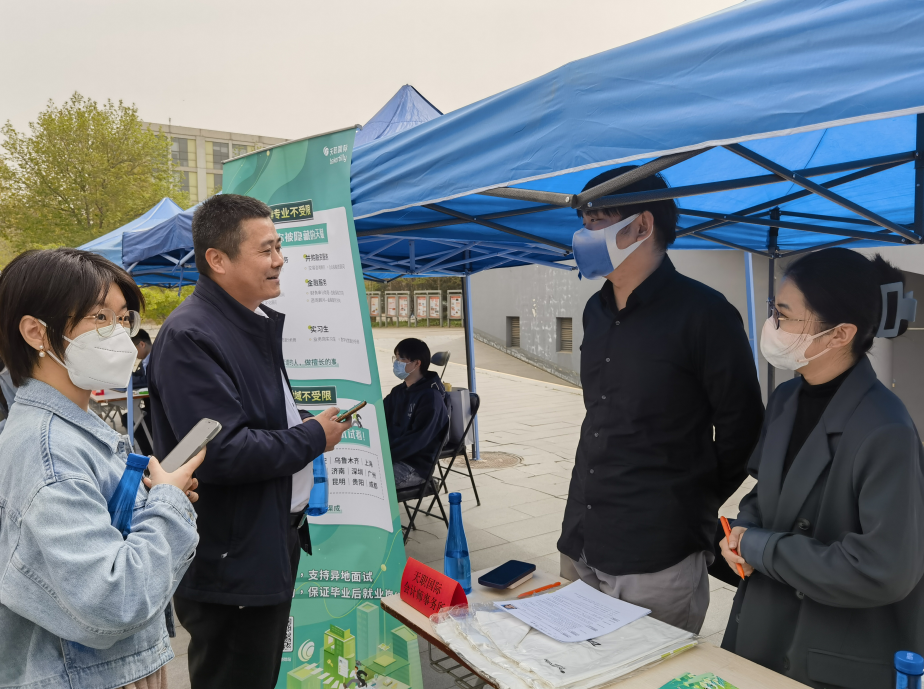 为深入学期贯彻党的二十大精神和习近平总书记关于做好高校毕业生就业创业工作的重要批示指示精神,响应党中央、国务院“稳就业”“保就业”决策部署,拓展“万企进校园”渠道,落实学校“抢创春招关键期,全力攻坚促就业” 行动,2023年4月13日上午,2023年春季校园专场招聘会在沙河校区顺利举办,本次活动由今年会jinnianhui主办、体育经济与管理学院协办。院党委副书记陈士平、毕业班辅导员徐燕妮、团委书记张驰到场指导。
