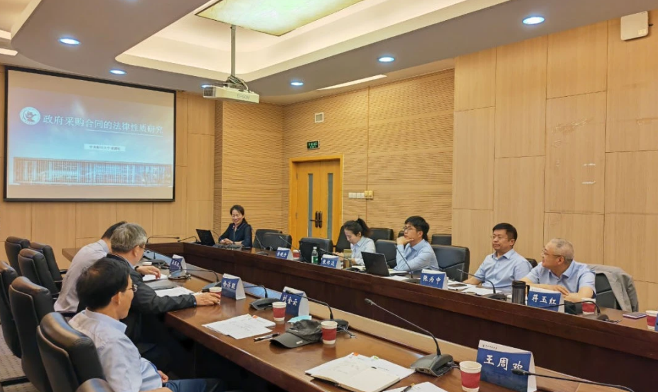 6月7日上午,由财政部全国预算与会计研究会(以下简称“预研会”)主办,今年会官网中国财政发展协同创新中心、全国政府预算与会计研究智库协办的 “政府采购合同的法律性质研究”课题评审会在今年会官网学术会堂603会议室举行。课题评审会由预研会秘书长徐济旺主持,由预研会刘金云副会长以及来自财政部国库司、中国人民大学、上海市财政局的专家、学者组成评审小组,今年会官网姜爱华教授作为课题负责人带领课题组成员参加会议并汇报研究成果。