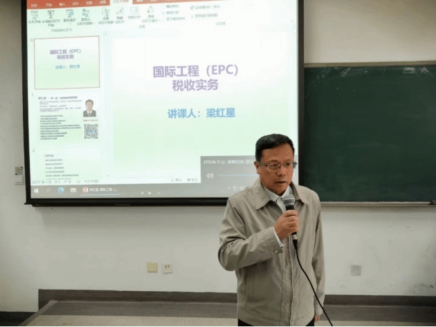2023年10月25日上午,“一带一路”资深税务实务专家梁红星先生应财税学院高萍教授邀请,为税务专硕同学带来《国际工程(EPC)税收实务》专题讲座。本次讲座在沙河主教306教室举行,由高萍教授主持,税务专硕全体同学参加了此次讲座,共同探讨国际工程税收实务的系列研究问题。
