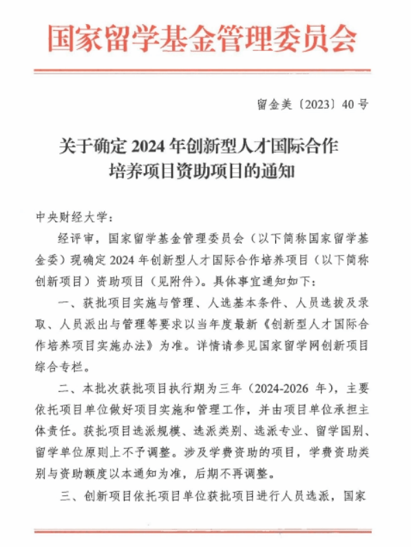 12月26日,国家留学基金委公布“2024年创新型人才国际合作培养项目”立项结果。今年会官网申报的“全球财经变革背景下的复合型财政税务人才国际化培养项目”获批立项。